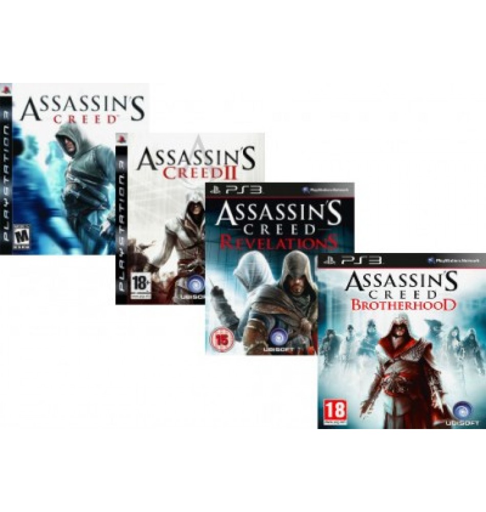 Zbirka obsega: PS3 Assassins Creed, PS3 Assassins Creed 2, PS3 Assassins Creed Revelations ter PS3 Assassins Creed Brotherhood.